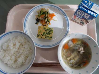 ごはん 切り干し大根の卵焼き お浸し のっぺい汁