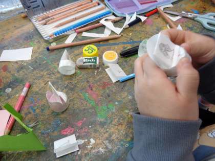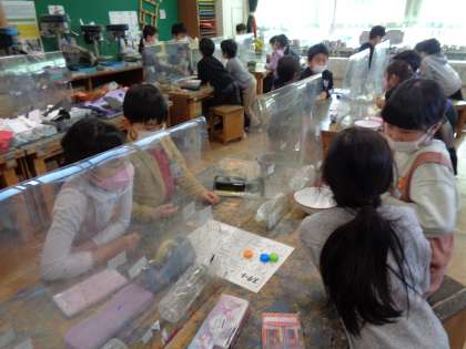 シンプルなすごろくで友達と遊んで仕組みを知り、「どのようなすごろくがあったら楽しいか」を考えながらコマを作りました。自分の好きな動物を作ったり、家族に合わせたコマを作ったり、思い思いのコマができました。