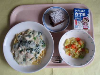 チキンクリームパスタ 三色サラダ