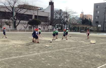1年体育「たまごわりサッカー」