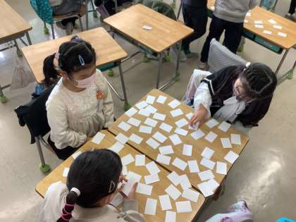習った漢字を使ってカードあそびをしました 公開日 2022/03/15 更新日 2022/03/15 2年 漢字二つを合体させて、習った漢字ができるようにカードを作りました。授業後半にはカードをつかって神経衰弱をし、辺やつくりに注目しながら漢字について考えました。「これは漢字になるかな?」「組合せができた!」と、楽しみながら漢字の学習をしました。 いいね(0)