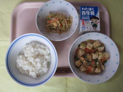 ごはん 四川豆腐 春雨サラダ 牛乳
