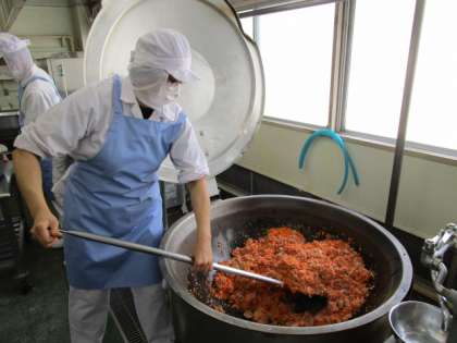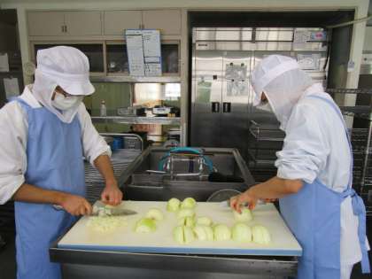今日のドライカレーには肉、野菜、豆などたくさんの具材が入っています。なにが入っているか当ててみてください。