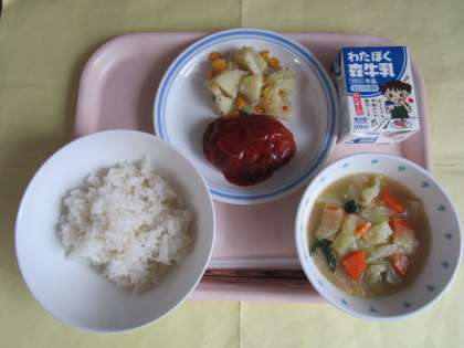 ・コーンとポテトのソテー ・野菜スープ   ・牛乳