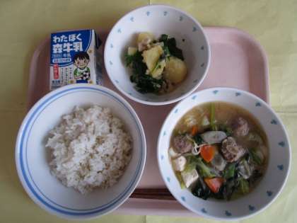 ・明日葉とじゃがいもの炒め ・牛乳