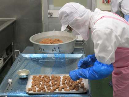 今日は東京都の食材(ムロアジミンチ、明日葉、小松菜)を使ったメニューです。ムロアジは、鯵の仲間で細長い体形をしており、東京都八丈島でよく食べられている魚です。近年では、ムロアジをミンチに加工して、都内の学校給食に使ってもらう取り組みが行われています。また、ムロアジを島の木で燻製にした伝統食「ムロ節」を復活させる取り組みも進んでいます。