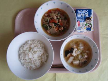 ・梅と白身魚のすまし汁 ・牛乳
