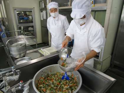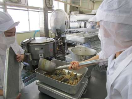 今日は福岡県の郷土料理です。「ぬかみそ炊き」は、各家庭で受け継がれていたぬか漬けのぬか味噌を青魚と一緒に煮た料理です。ぬか味噌は魚の生臭さが消す効果があります。「あちゃら漬け」は夏によく食べられている甘酢漬けで、さっぱりした味が暑くなる時期にぴったりです。「水炊き風スープ」はたくさんの鶏ガラを使って作りました。福岡県の味を楽しんでください!