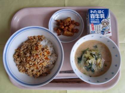 ・大豆とじゃがいもの甘辛和え ・牛乳