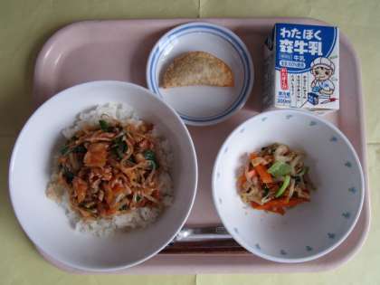 ・キムチ丼 ・糸こんにゃくのごま酢和え