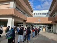 金沢市立杜の里小学校に到着しました。これから現地の小学生と交流します。