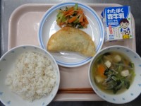 【10月16日(木)献立】・ごはん ・ジャンボ餃子 ・ナムル ・中華スープ ・牛...