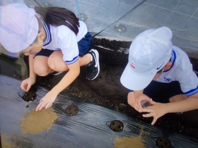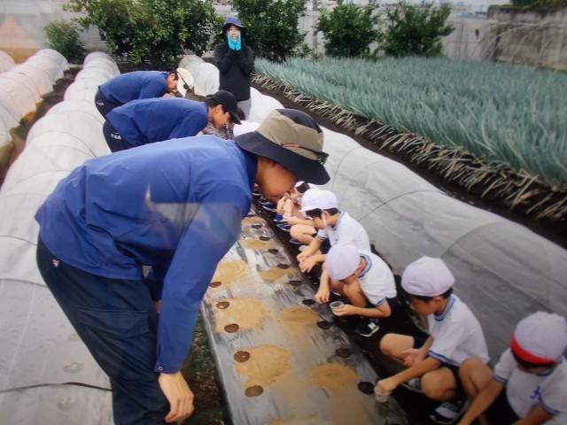 数少ない区内の農家さんたちが目黒区にも農地があることを知り、地場産物を味わってほしいと毎年、区内の小中学校、こども園に大根をプレゼントしてくれています。その農家さんの一人である栗山貴美子さんやJA世田谷目黒の職員のみなさんから大根の種まきの仕方や育て方を教えてもらい、その大根を育てるお手伝いをさせてもらいました。教えてもらったことを生かして学校の裏庭畑で江戸東京野菜の大蔵大根作りを行っていきます!!