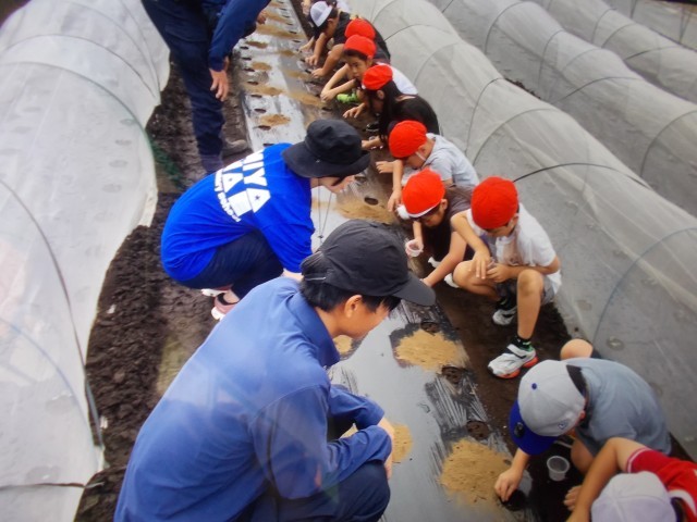 栗山ファームさんで大根の種まきの仕方を教えてもらい、種まきをさせてもらいました。