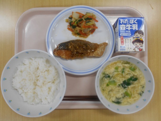 ごはん かきたま汁 さばのレモンとゆずの風味揚げ お浸し 牛乳