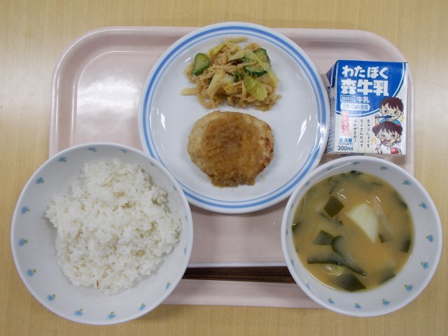 ごはん 味噌汁 とうふハンバーグ〜大根おろしソースがけ~ 切干大根のごま酢和え 牛乳