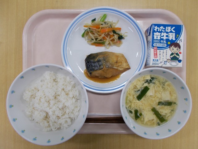 ご飯 かきたま汁 さばのみそ煮 お浸し 牛乳