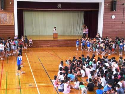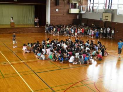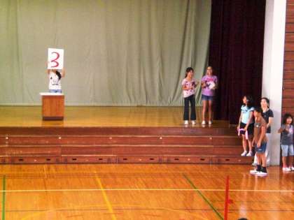 児童集会 4つ角ゲーム 公開日 2011/09/09 更新日 2011/09/09 共通 集会委員会主催の「4つ角ゲーム」をしました。 音楽が鳴っている間に1〜4が貼ってある好きな角に移動します。ストップがかかったら、集会委員が番号札をひきます。集会委員がひいた番号の角にいる人はアウトです。最後まで残ることができるようみんな自分のカンを働かせて楽しんでいました。 いいね(0)