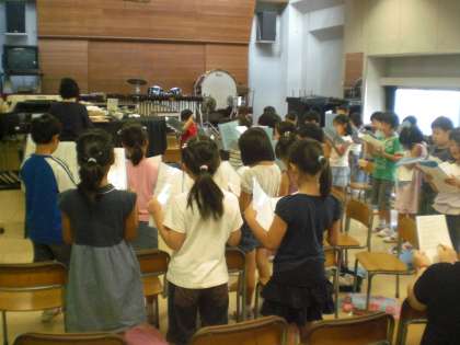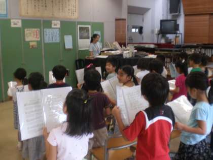 9月のうた「空を見上げて」を練習しています。15日の音楽朝会では全校のみんなで合奏を行います。