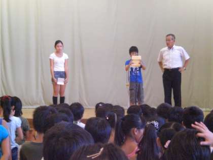 8月5日〜7日まで、本校の6年生が「目黒区平和の特派員」として広島に派遣されました。また、8月6日、目黒区民ホールで行われた「平和祈念の集い」にも代表児童が発表しました。今日は宮前小学校の児童朝会で2人の6年生が報告をしました。