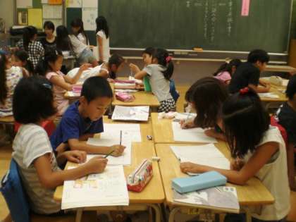 原稿を互いに読み合い、付け足すところをグループの友達からアドバイスをもらいました。