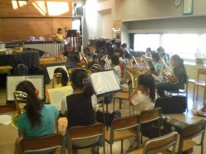 管楽器クラブ 公開日 2011/09/22 更新日 2011/09/22 共通 学芸会、お祭り広場での発表会に向けて一生懸命に練習しています。毎日7時45分から8時15分まで朝練をしています。土曜日日曜日も特別練習があります。 いいね(0)