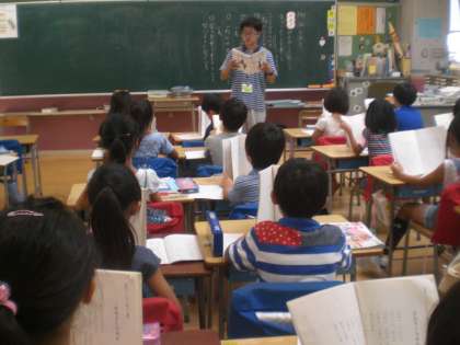 阪田寛夫の「大きくなあれ」の詩を読んで感想などを話し合っています。