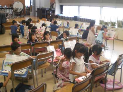 「山のポルカ」のメロディーを鍵盤ハーモニカで練習しました。2びょうしを感じながらしっかりひいています。