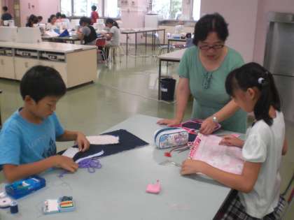 制作手順やデザインを考えて、身の回りの布を使って作品を作っています。