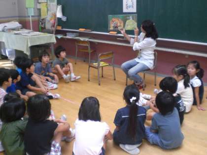 全学級でお話劇場 9月 (1) 公開日 2011/09/22 更新日 2011/09/22 図書 お話劇場です。子どもたちが大好きな時間です。保護者の方が月に1回読み聞かせをしてくださいます。ありがとうございます いいね(0)