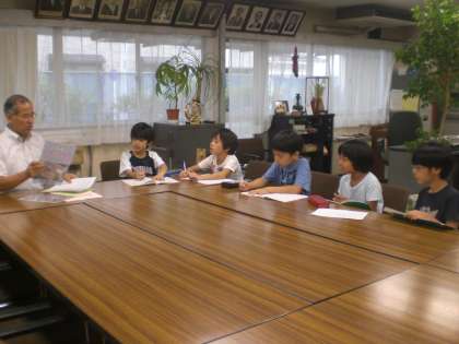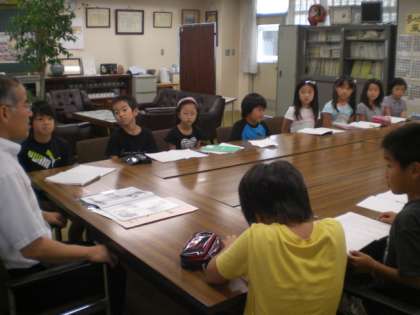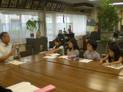 校長先生に学校行事についてインタビューをしています。