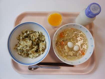 高菜ご飯 タイエーピン 豆乳ゼリーピーチソース 牛乳