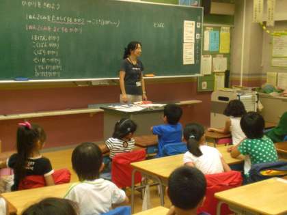 先生が司会をして学級会を行っています。係を決めています。