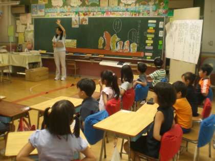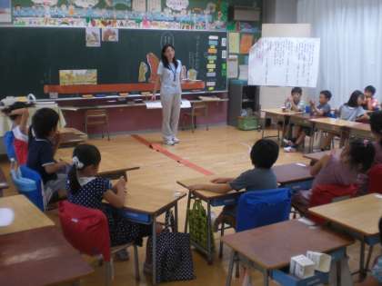 橋の上でいじわるをしたオオカミが、クマに親切にしてもらったことにより、自分の行動を振り返る場面を、役になって演技をしながら学習しました。オオカミの気持ちを考えることを通して、親切にしてもらうとうれしい、自分も親切にしようという気持ちをもつことができたと思います。