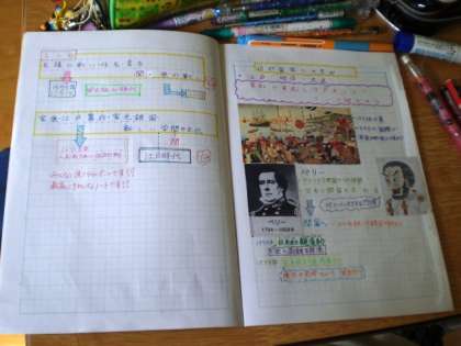 ペリー来航から開国にかけてを学習しました。さすがは6年生、みんなノートのまとめ方がとても上手です。