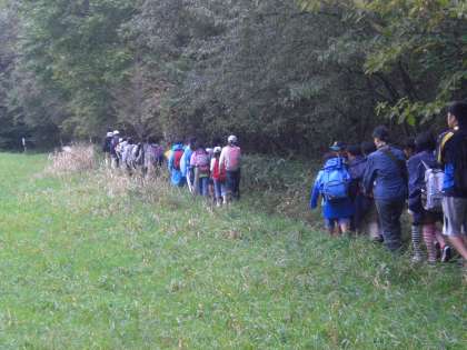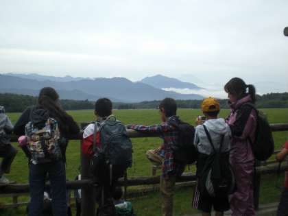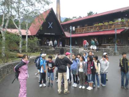 清泉寮を見学した後ハイキングをしています。