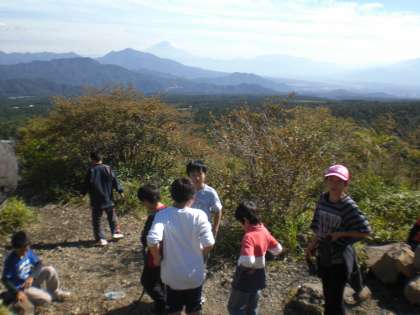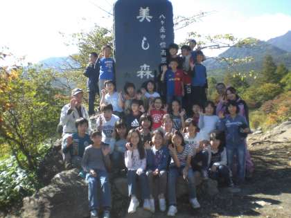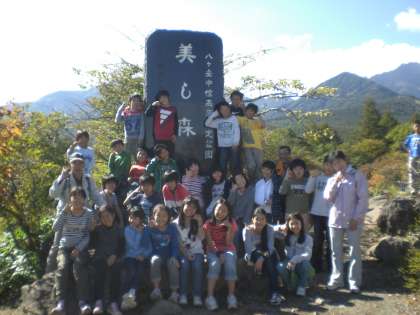 ハイキングのゴール美し原に全員が到着しました。ソフトクリーム、富士山もバッチリです。