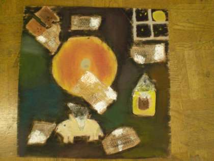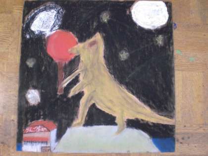 5年 図工 真夜中の生きものたち (2) 公開日 2011/09/24 更新日 2011/09/24 5年 真夜中には人間以外の生きものたちが、いろいろなことをして楽しんでいるのではないか… 真夜中の生きものたちの様子を想像し、パステルで描いています。板に麻布、新聞紙、絵の具で一人一人がつくった土台にダイナミックに描きました。 いいね(0)