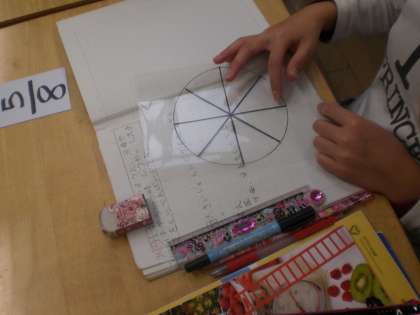 単位分数をもとにした考え方で、異分母、異分子の分数の大小比較の方法を考える学習です。