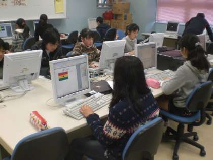 自分の興味のある国について調べる計画を立て、パソコンで調べています。