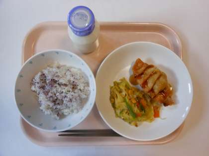 2月の献立は、6年生のリクエストを取り入れています。ゆかりごはんとジャンボ餃子は、6年生のリクエストです。特に餃子は、おかずの中で唐揚げ、中華風キュウリに続いてリクエストが多かったでした。普通の大きさの1.4〜1.6倍はある大きさの揚げ餃子で、甘酢だれをかけて食べます。