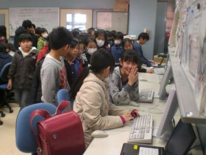 3年生が宮前小学校の理科、パソコン、バドミントンクラブを見学しています。