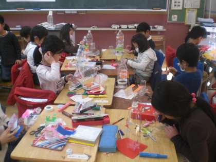 1年 図工 びっくりピョーン 公開日 2012/02/10 更新日 2012/02/10 1年 びっくりピョーンとは、家からペットボトルや紙コップなどを持ち寄り、空気の力で飛ばすおもちゃです。色とりどりな、そして楽しいおもちゃが出来上がりました。 いいね(0)