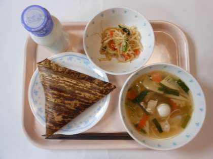 中華ちまき 汁ビーフン もやしのナムル 牛乳