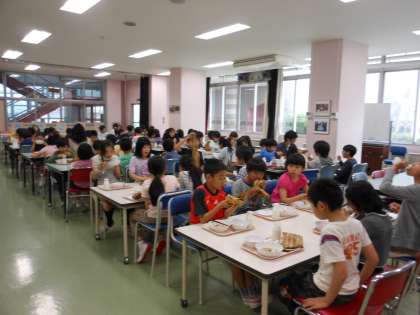 また、今日は4年生のランチルーム給食でした。ランチルーム給食には、お楽しみデザートがつきますが、今日は「りんごゼリー」でした。