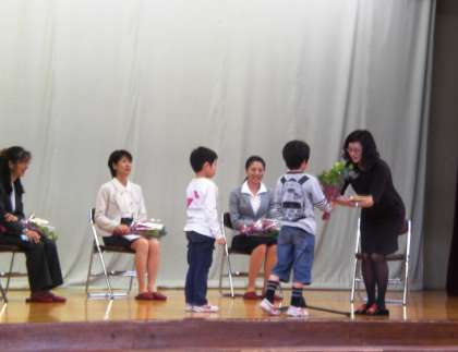 離任式 公開日 2012/05/04 更新日 2012/05/04 共通 ご転任・ご退職された先生方主事さんをお迎えして、離任式を行いました。式では代表の子どもたちからお手紙と花束を渡し、去られる先生方からお話しをいただきました。 いいね(0)