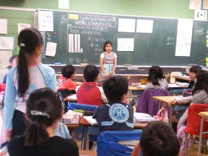 十の位がわり切れない場合のわり算の計算の仕方を考えました。自分で考えたやり方を発表しました。