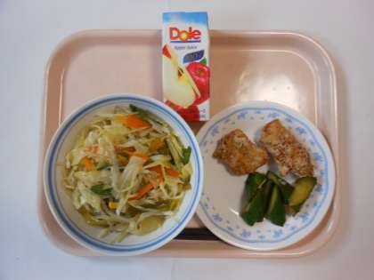 タンメン 鶏肉の唐揚げ 中華風きゅうり 雪見大福 りんごジュース