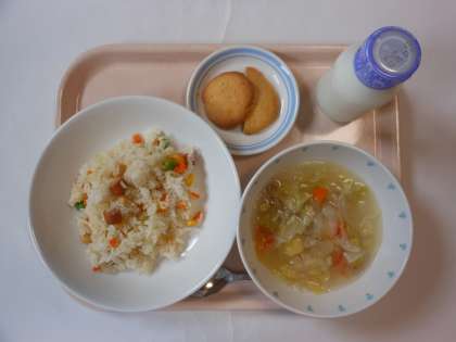 大豆ピラフ ABCマカロニスープ 紅茶クッキー 牛乳