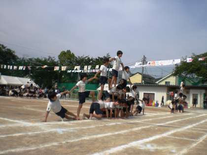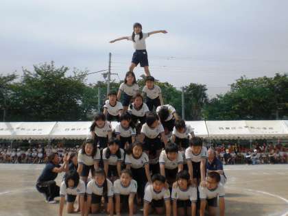 運動会(3) 公開日 2012/05/26 更新日 2012/05/26 共通 5・6年生の表現種目「心を一つに2012」は、さすがは高学年と思える素晴らしい組体操を披露しました。 今年の運動会は、なんと一点差で赤組が勝ちました。 いいね(0)